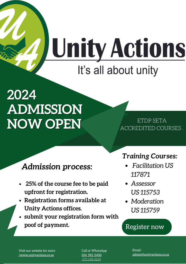 Unity Actions strives to align it’s policies with the South African youth empowerment programs Code of Conduct